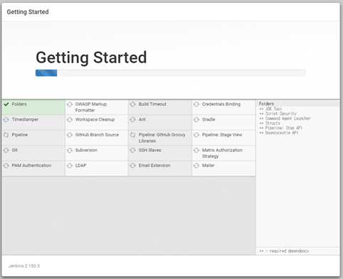 * Jenkins ‘Install suggested plugins’ 설치 전에 Proxy 설정이 필요한 경우 Jenkins에 Proxy 설정 화면이 자동으로 뜹니다. Proxy IP, Port, ID, Password 입력 및 저장 후 다음 |
