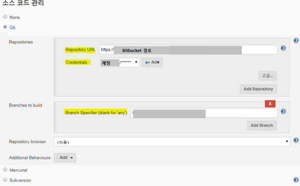 · Repository URL: git 혹은 bitbucket url주소